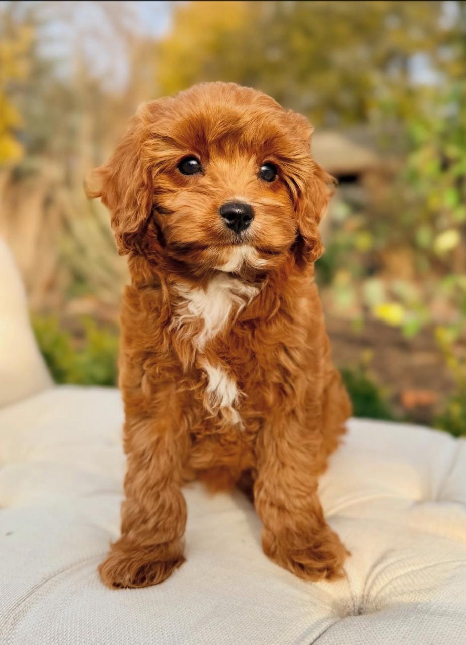 Meet Molly, our precious red Cavapoo girl who is full of love, warmth, and gentle charm.